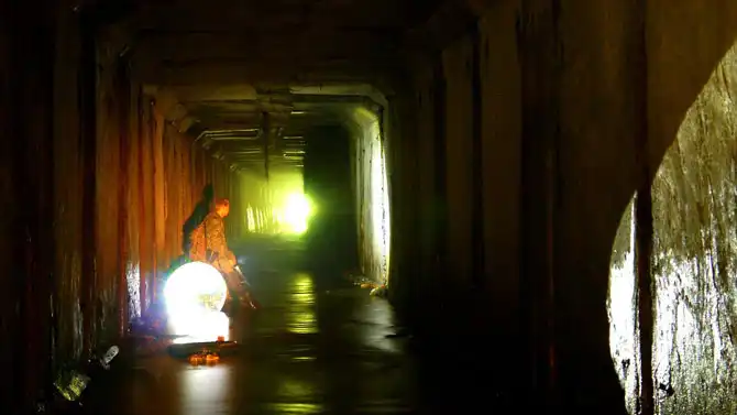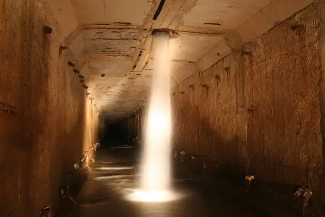 Петровский коллектор представляет собой 2 параллельно идущих тоннеля длиной 1.2 км. Они собирают воду с нескольких магистралей и завода имени Петрова