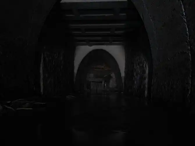 В торце арки переход в прямоугольный тоннель