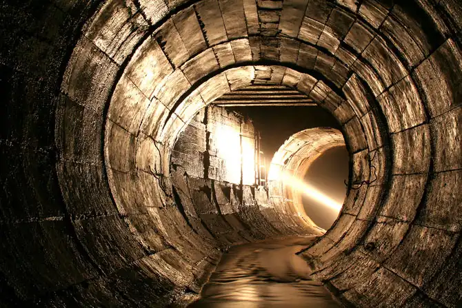Почти под каждой дорогой проложены трубы диаметром см 30, это самое начало системы, к этим трубам от решеток идут перпендикулярные трубы меньшего диаметра. Вода, попадая в решетку, перетекает в основную трубу под дорогой. Когда расчетное количество воды превышает пропускную способность, то диаметр трубы увеличивается. Так трубы идут до пересечения с другим коллектором большего диаметра, куда и осуществляется слив.Так по нарастающей и растет диаметр труб, вплоть до магистральных и напорных коллекторов, которые огромны и очень опасны. Некоторые системы сейчас и посмотрим.