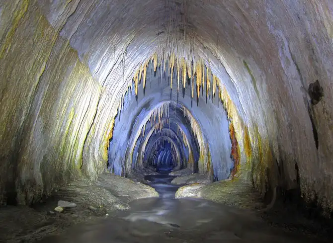 Река белая. Огромная система и очень красивая + старому участку около 200 лет. Основной тоннель – 3 км, подключка – 700 метров, главный приток – 2.5 км