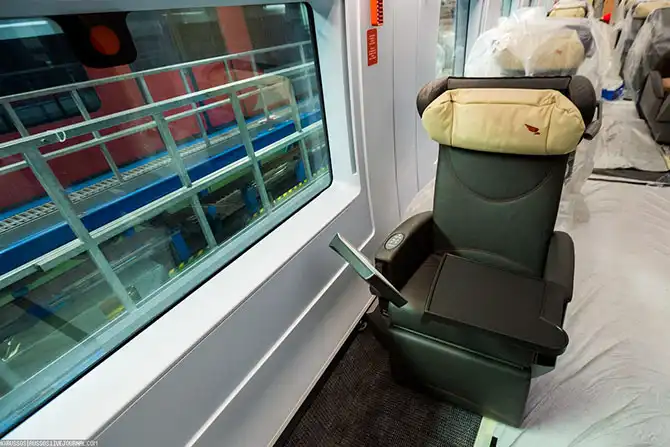 Первый класс. Столик, телевизор и обслуживание по высшему разряду. Однако, в целом пассажир особой разницы между поездами не заметит. Поэтому прекращаем осмотр того, что пассажиры и так видят, и спускаемся под вагон.