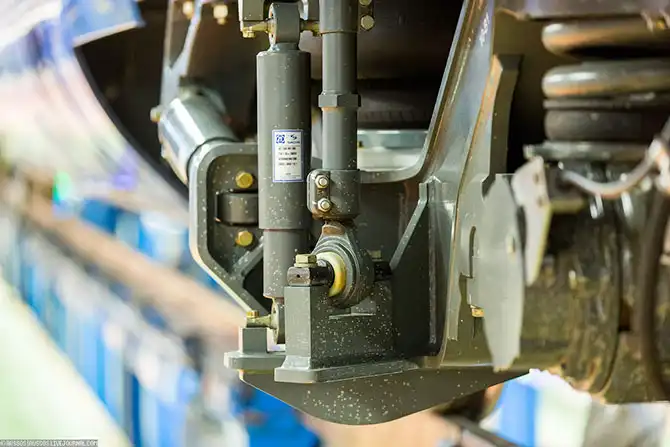 Демпферы. Немножко удивило, что при обтекаемой конструкции поезда некоторые части тележек вот так высовываются.