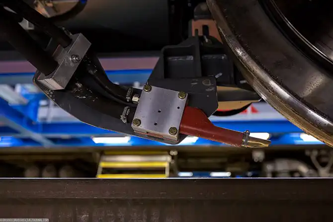 Специальный стенд для обработки подвагонного пространства и тележек антиобледенительной жидкостью.