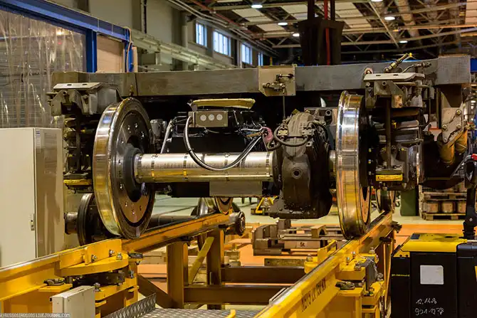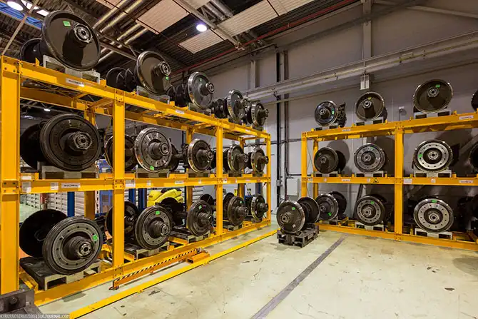 Готовые к установке колёсные пары. Из-за высоких скоростей к ходовой части подвижного состава предъявляются очень высокие требования.