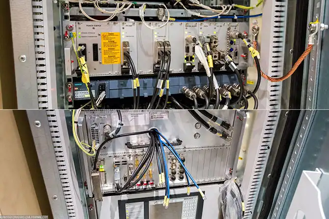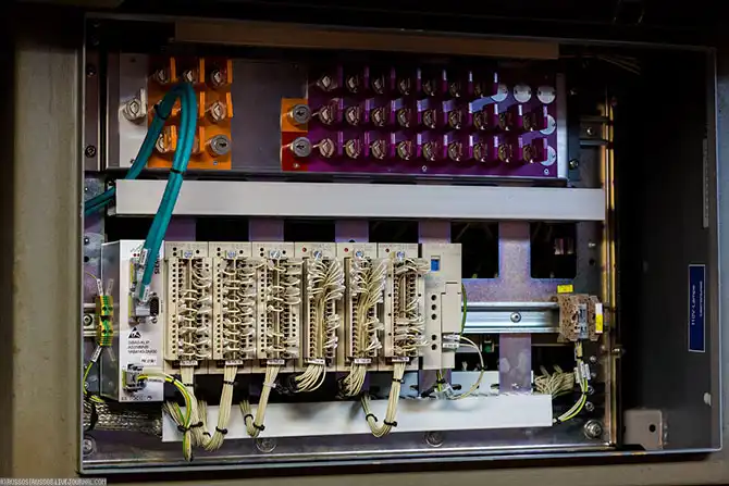 Система доступа к электрооборудованию. Чтобы попасть в ящик, надо сначала открыть этот, повернуть ключ, тем самым обесточив нужный модуль, взять ключ и открыть им агрегат. До закрытия ящика и возвращения ключа на место блок работать не будет.