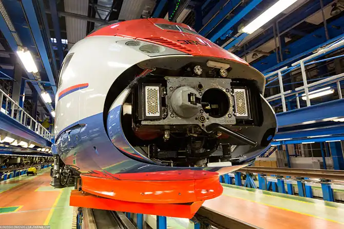 Начну с основного. В отличие от первой версии, где на головных вагонах применялась обычная автосцепка, здесь используется автоматическая сцепка Шарфенберга. Помимо автоматического соединения пневматических и электрических магистралей, она обеспечивает максимальную скорость двух сцепленных составов — 250 км/ч. Этим она отличается от СА-3, ограничивающей движение состава до 200 км/ч. Очень важное усовершенствование если учесть, что система скоростного железнодорожного транспорта будет развиваться, и скорость передвижения поездов дойдёт до проектных 250 км/ч.