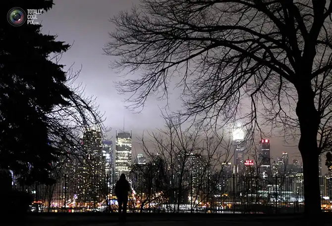 Женщина любуется Нью-Йорком из Вихокена, штат Нью-Джерси.