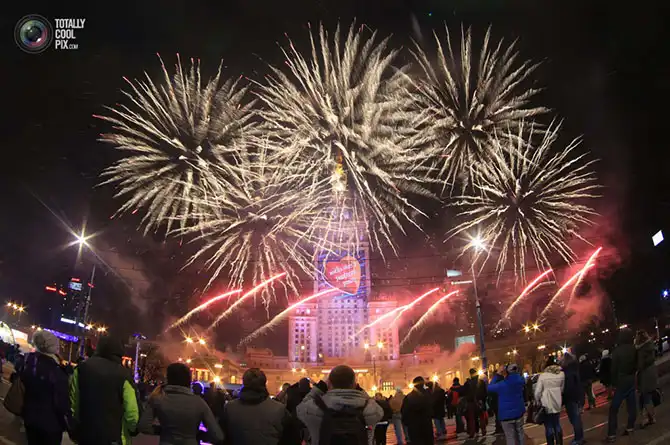 Люди смотрят салют на ежегодном благотворительном мероприятии в Варшаве, Польша.