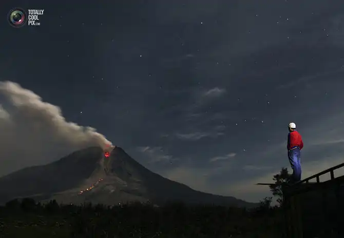 Извержение вулкана Синабунг в округе Каро, Индонезия.