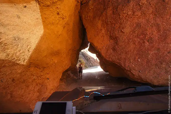 Дэф умудрился пройти по миллиметрам, пришлось даже сложить зеркала. Судя по многочисленным отметинам на скалах, не всем машинам так везло.