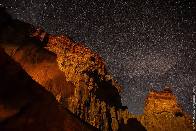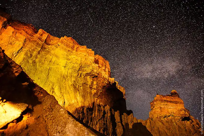 Честно признаюсь, наслушавшись всех этих рассказов, бегать в темноте туда-сюда с камерами было довольно страшно. Казалось, что кто-то наблюдает за тобой, прячась за скалами, а иногда среди абсолютной тишины рядом вдруг слышались шаги да сыпались по склонам мелкие камни.