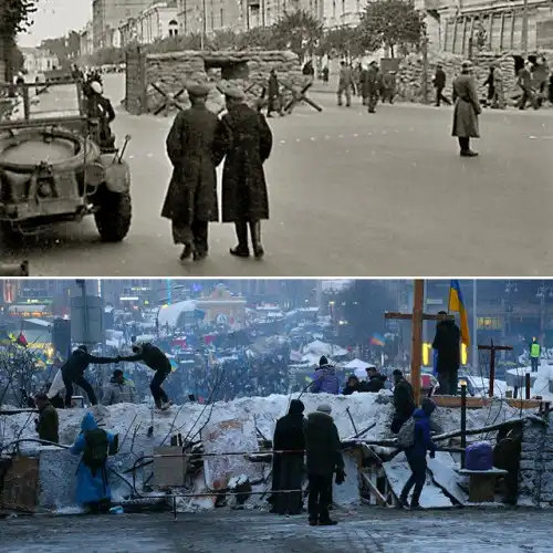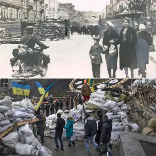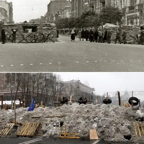 Киевские баррикады 1941 и 2013 годов: ФОТОсравнение