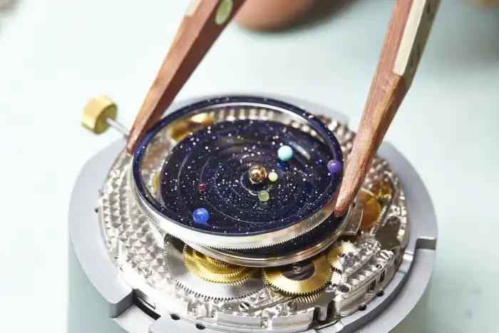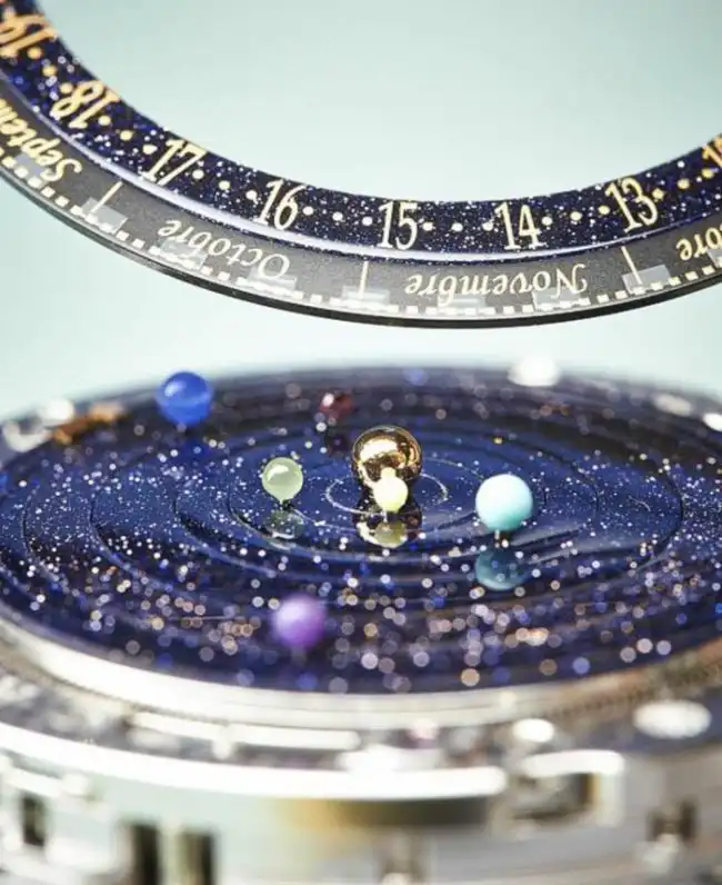 Эти необычные часы, которые называются Planetarium Poetic и были созданы компанией Van der Klaauw, можно по праву назвать самыми точными и удивительными во всей солнечной системе! Почему? Все дело в том, что этот хронограф не только показывает время, как все обычные часы, но еще и отображает точное движение других планет в нашей солнечной системе. Очень сложный часовой механизм был собран из 396 уникальных компонентов, работающих одновременно.