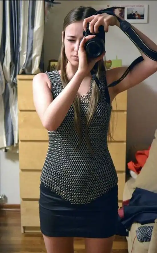 Далее со слов девушки: Начала я с колец из алюминиевой проволоки, из которых был сплетён ( с четвертого раза) лиф, который, к слову, выдержал только несколько надеваний, после чего разошёлся посередине