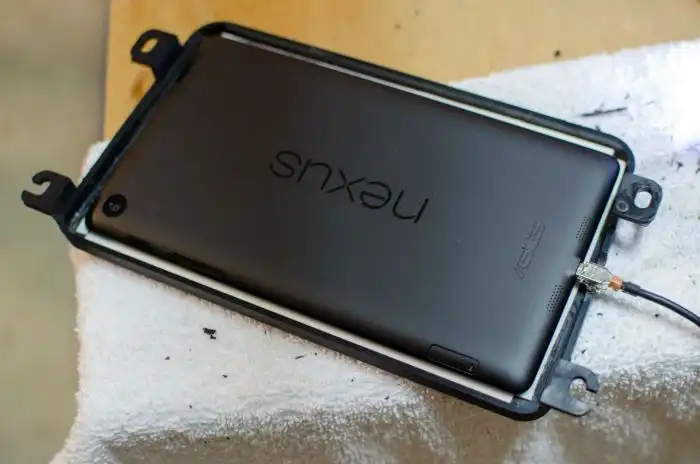 Небольшая фотоинструкция того, как один парень решил обновить интерьер своего автомобиля. Он просто вставил в панель свой планшет и теперь использует его в качестве бортового компьютера.