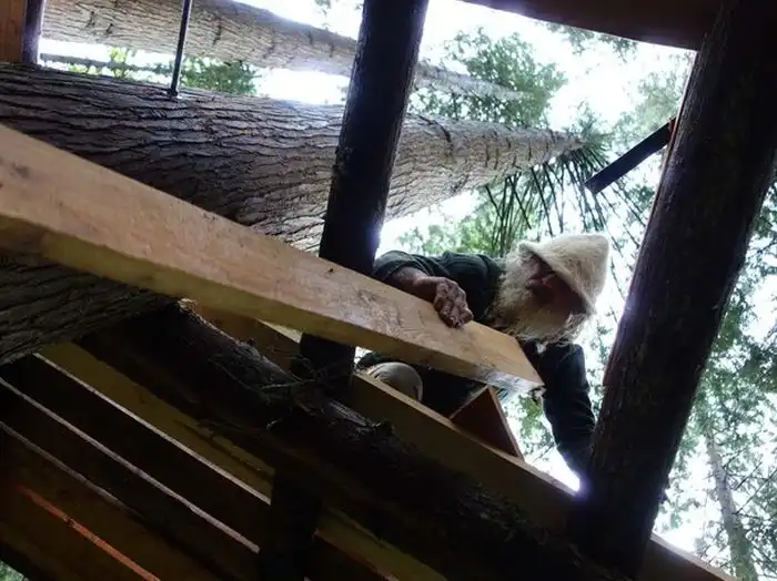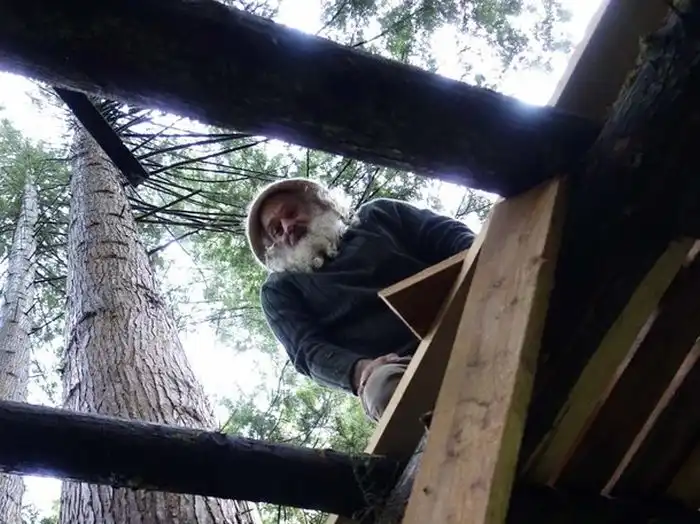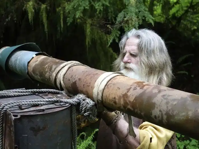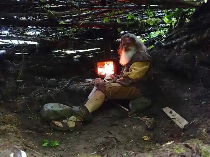 Хочу рассказать вам историю про мужчину по имени Мик Додж, который последние 25 лет проживает в лесу. 62-летний Мик Додж всегда ходит босиком и его огромные ступни придают ему весьма странный вид. Однажды, туристы приняли его за снежного человека. А «National Geographic» посвятил ему целый фильм под названием «Легенда о Мике Додже». Для съёмок мужчина специально оделся, как снежный человек, чтобы напугать группу детей, правда этого у него не получилось. В итоге, «National Geographic» сняли Мика Доджа в самом естественном образе, где он собирает грибы и строит себе хижину.