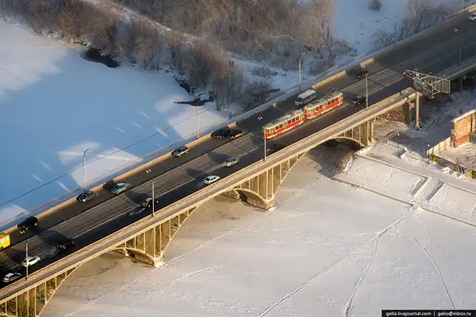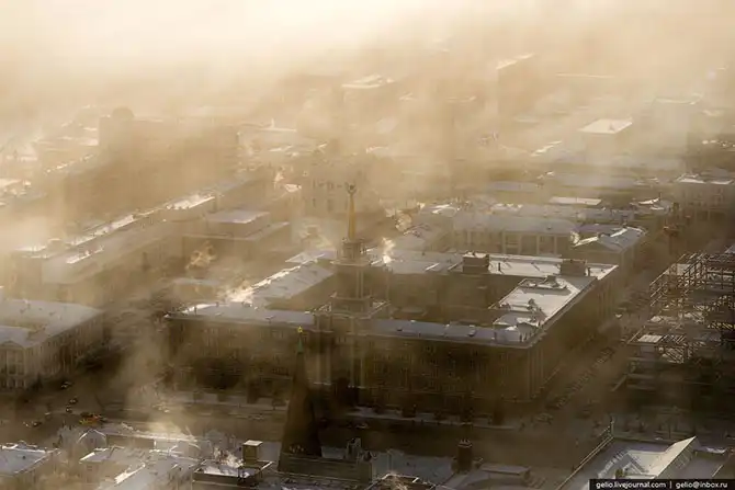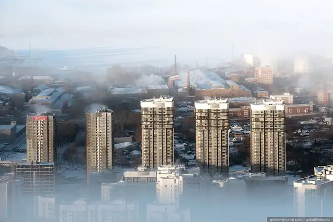 Екатеринбург расположен на Среднем Урале, в глуби континента, поэтому для него характерны довольно суровые зимы. По моим ощущениям, холод здесь переносится тяжелее, чем в Сибири. В те дни, когда я снимал эти фотографии на улице было до -38 градусов. На некоторых кадрах видно утреннюю морозную дымку, которая накрывала целые районы города, а сквозь неё виднелись только несколько небоскребов.