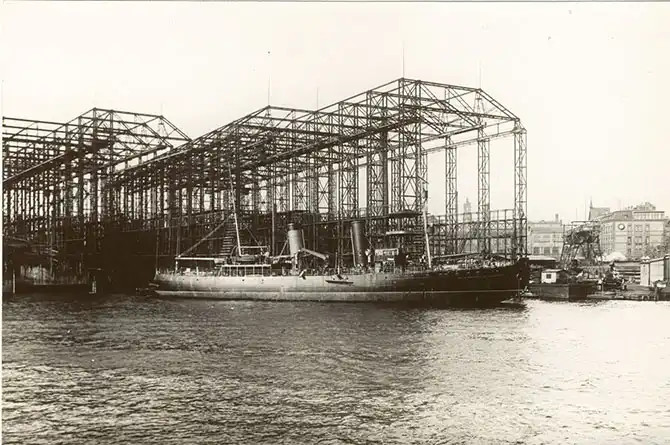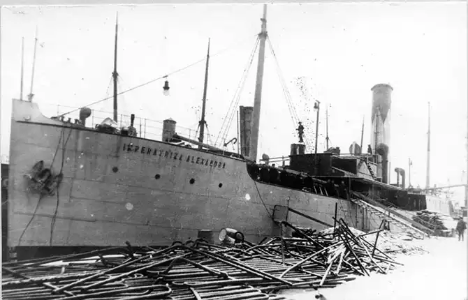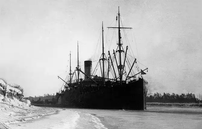 Транспорт «Самоед» в плавдоке Металлического завода. Балтийский флот