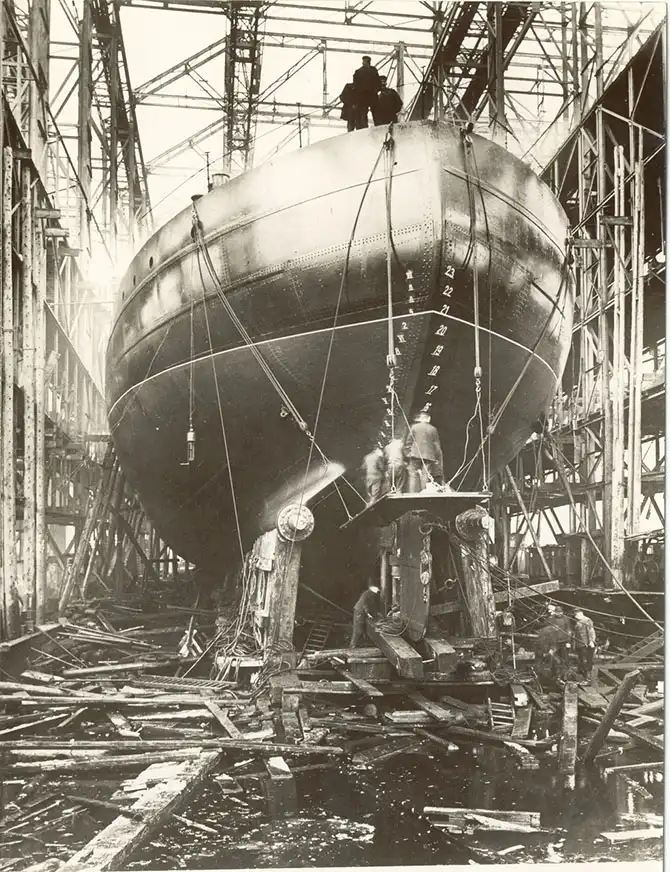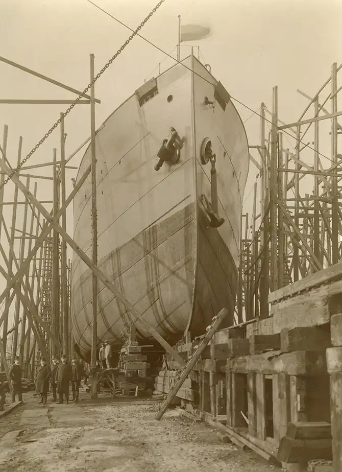 Пароход «Россия» на стапеле перед спуском. 06.03.1908г.