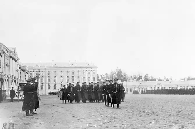 Парад Гвардейского флотского экипажа на строевом плацу в 1908 году