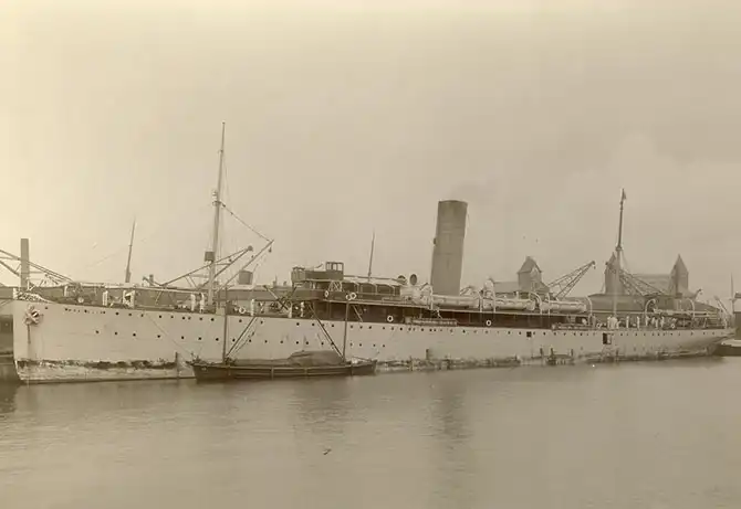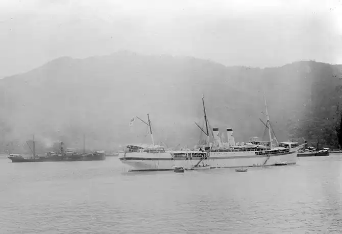 Госпитальное судно 2-й ТЭ «Орел» на стоянке в Носси-Бэ