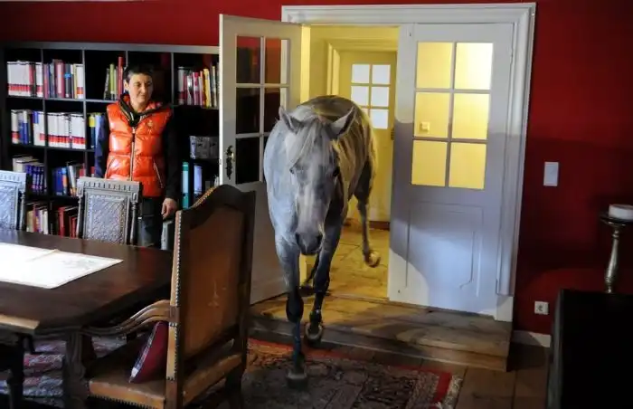 Во время сильного шторма эта лошадь нашла единственное место спасения - в доме хозяина.