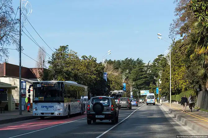 Вообще, с точки зрения заезжего туриста, город сильно преобразился. Очень чисто, везде порядок, нормальный транспорт, люди улыбаются, у всех праздник. Сейчас лучшее время для посещения Сочи. Даже без Олимпиады, просто приехать погулять, посмотреть. Рекомендую. Надеюсь, после окончания игр удастся сохранить порядок, которые навели. Сегодня я собрал все положительные моменты, которые заметил во время прогулки по городу.