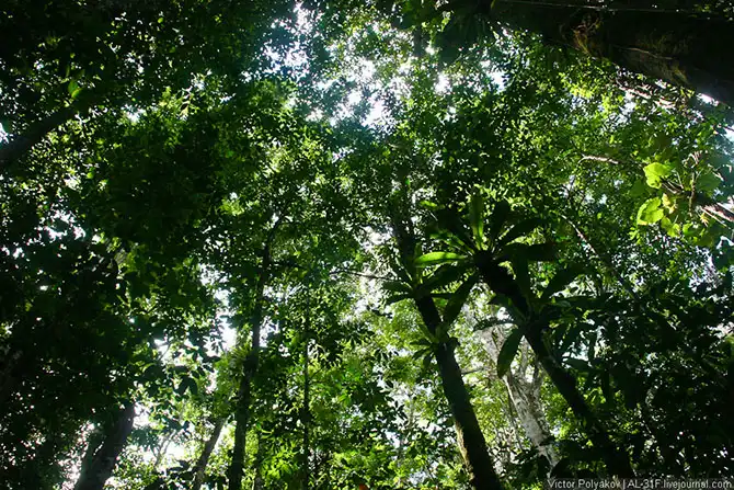 Потом потихоньку пошли вниз. Дождь молотил на крыше джунглей, под которой было всё так же душно, только еще более сыро.