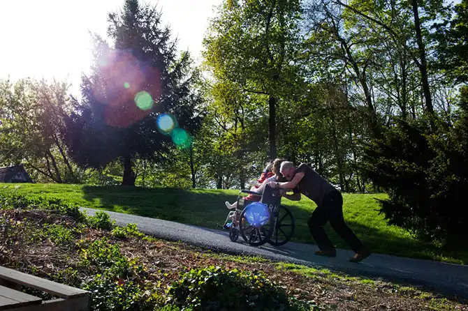 Крис из Пенсильвании толкает коляску со своими куклами по имени Лала Салама и Шерон. Шерон – силиконовая кукла, долго ее не проносишь.