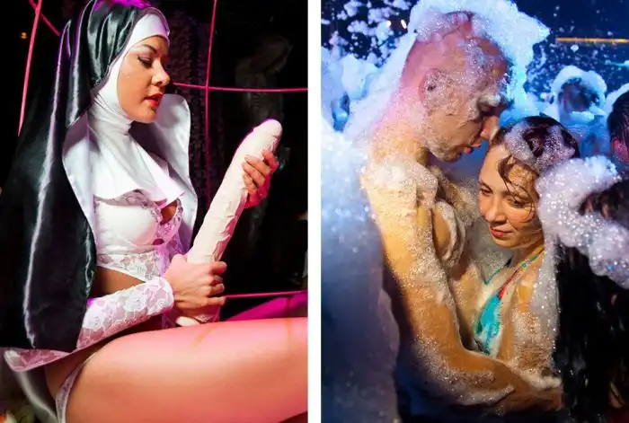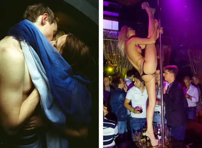 "Однажды на какой-то церковный праздник танцовщиц одели в монашескую форму и раздали им большие фаллосы. Во время подготовки танцовщицы вышли на подиум, и арт-директор в ужасе отменил это представление. У меня было секунд пять, чтобы подбежать и сделать единственный кадр монашки. В последнее время я почти не снимаю внутри клубов, но ищу интересные сцены на улице возле них".