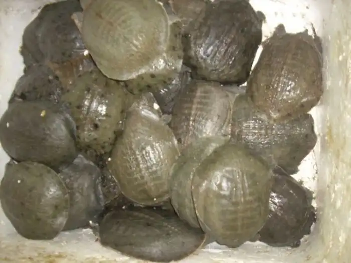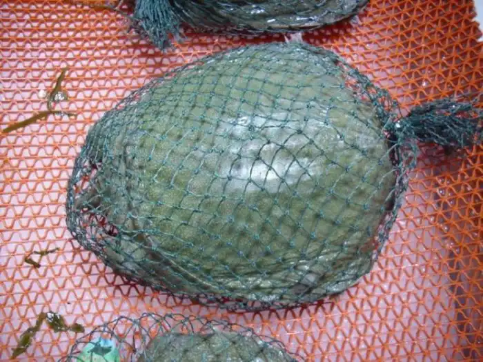 Живая черепаха в супермаркете. Сетка для того чтобы не убежала.