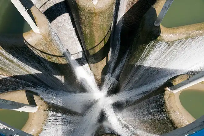 Водосброс на Кечутском водохранилище в Армении. Вода из него по трубопроводу поступает в озеро Севан. За внешнюю схожесть с цветком систему называют «Маргариткой». Водосбросы такого типа имеют большую пропускную способность, препятствуют образованию водоворота и значительно дешевле традиционных водосбросов.