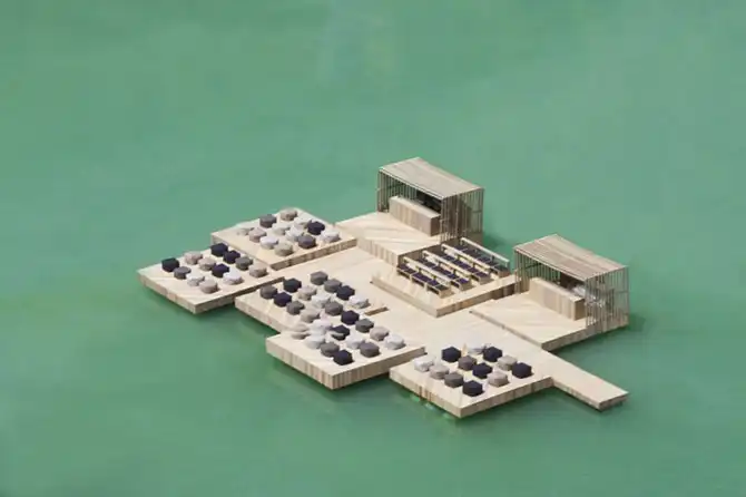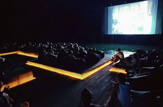 Кинотеатр на воде построили в Таиланде в тихой лагуне у острова Яо Ной. В кинозал посреди моря зрителей доставляли на лодках. Архитектор Оле Шерен построил кино-архипелаг на огромном плоту из переработанных материалов.