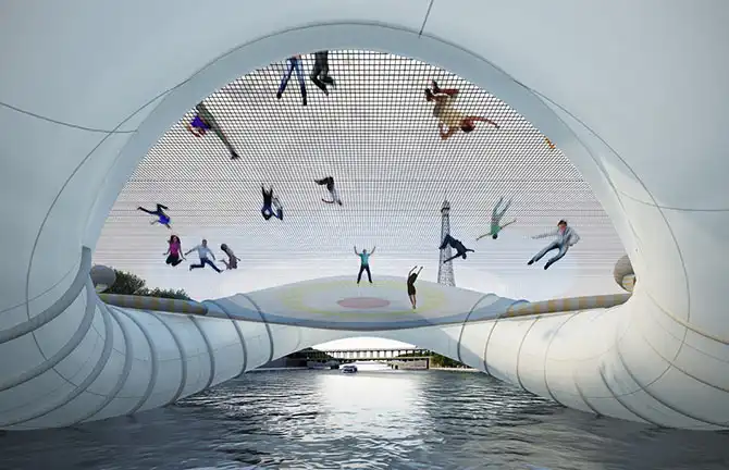 Если городские власти одобрят проект дизайнерского бюро AZC, то вскоре речку в центре Парижа можно будет в прямом смысле слова перепрыгнуть. Недалеко от Эйфелевой башни могут построить надувной мост, который станет настоящим развлечением для жителей и гостей города.