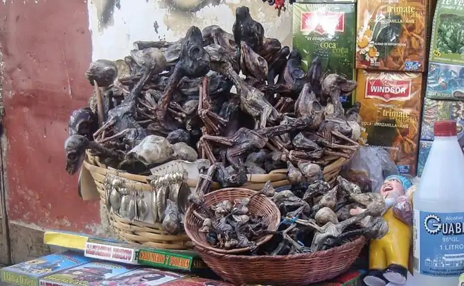 Один из крупнейших рынков для колдунов находится в фактической столице Боливии – городе Ла-Пас, на 3600 метров возвышающимся над уровнем моря. В основном сюда приходит местные колдуны и хилеры, которых здесь называют каллаваями, однако встречаются и простые туристы, бродящие от прилавка к прилавку в поисках зелья любви, амулета удачи, ладана и свеч от злых духов.