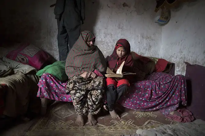 Пакистанка Таджрошан, 40 лет, и ее дочь Айман, 12 лет, живут в трущобах на окраине Исламабада. Мама всего два года училась. Это помогло ей самостоятельно начать читать Коран. Дочь мечтает стать врачом. Денег на это пока у семьи нет.
