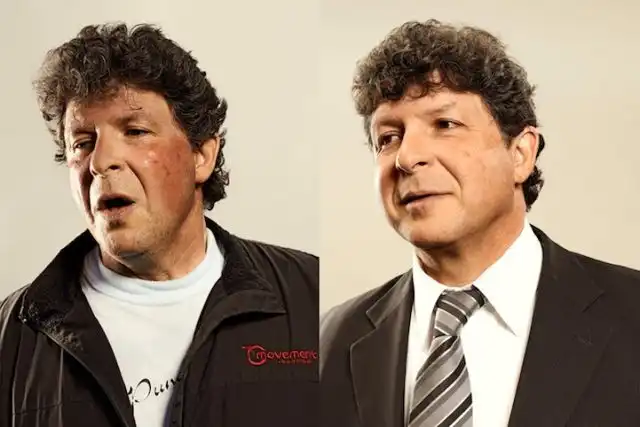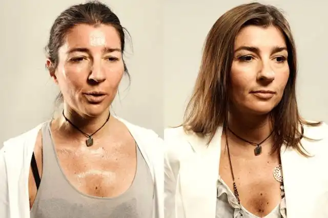 Фотограф Саша Голдбергер считает, что обычный человек, работающий в офисе может стать похожим на самое настоящее «животное», если сфотографировать его сразу же после хорошей пробежки. Офисный работник до и после пробежки на снимках этого фотографа предстает перед нами в двух разительно отличающихся образах: аккуратного цивилизованного представителя современного общества и потного растрепанного диковатого человека. Фотограф создал свою студию в Париже и просил бегунов позировать для своих фото-портретов до и после пробежки. Какое из лиц Вам милее?