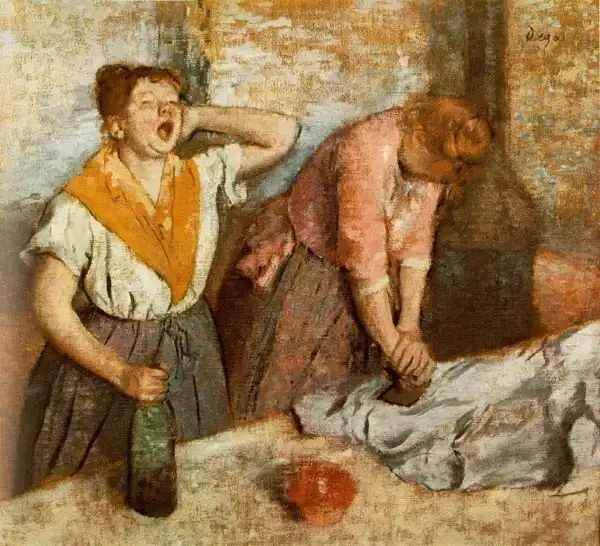 Хрупкие и невесомые фигурки балерин предстают перед зрителем то в полумраке танцевальных классов, то в свете софитов на сцене, то в короткие минуты отдыха. Кажущаяся безыскусность композиции и незаинтересованная позиция автора создают впечатление подсмотренной чужой жизни ("Танцевальный класс", 1873-1875; "Танцовщица на сцене", 1878 - обе в Музее Орсэ, Париж; "Танцовщицы на репетиции", 1879, ГМИИ, Москва; "Голубые танцовщицы", 1890, Музей Орсэ, Париж). Та же отстраненность наблюдается у Э.Дега и в изображении обнаженной натуры. При работе над женскими образами, по словам самого художника, его в первую очередь занимает цвет, движение и строение их тела. Поэтому ему достаточно изобразить мелькнувшую в дверном проеме молодую женщину, кокетливо надетую шляпку, утомленную позу гладильщицы или прачки ("Чтение письма", 1884, Художественная галерея и музей, Глазго; "Гладильщицы", Музей Орсэ, Париж). Женщины на его полотнах лишены тепла, но от этого они не становятся менее привлекательными и волнующими.