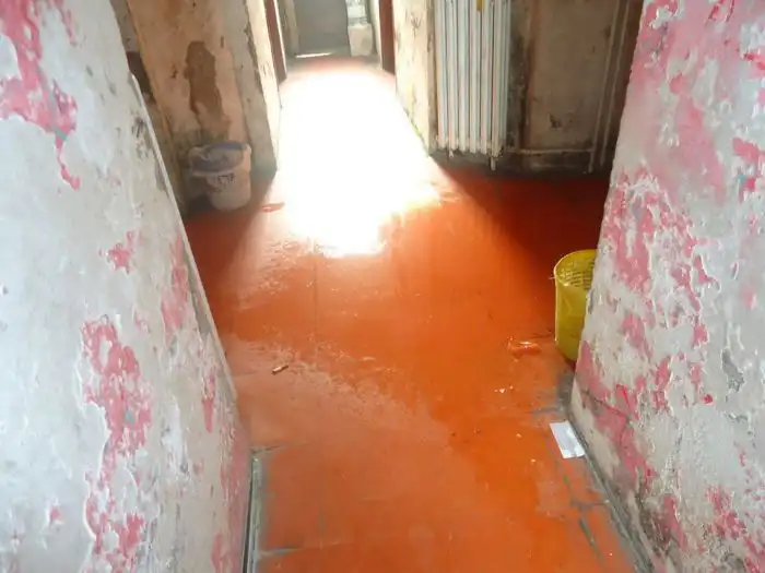 Коридоры. Это второй этаж. Так получилось, что на седьмом этаже прорвало трубу, что не удивительно.