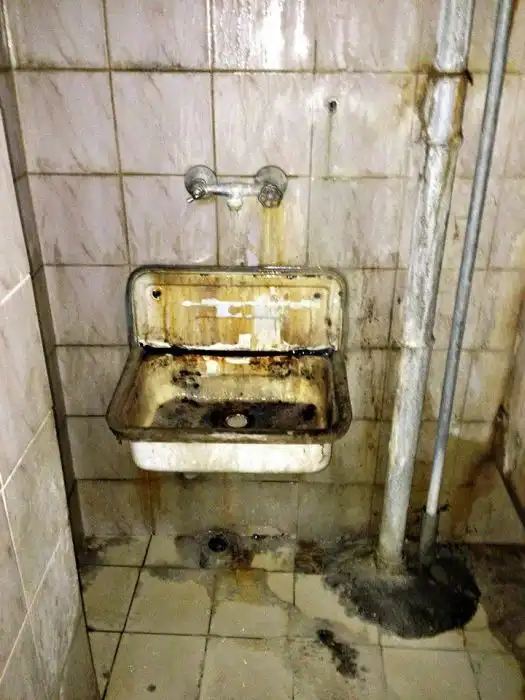 Ванная. Что-то не выдержало и потолок упал. Хорошо, что никого не было в ванной.