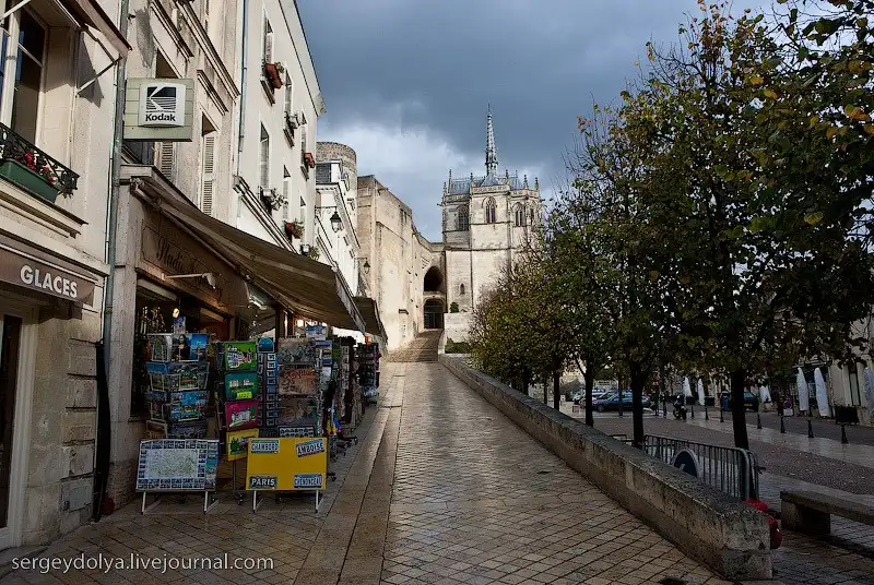 Амбуаз стоит на высоком уступе и вверх нужно идти вдоль сувенирных лавок: