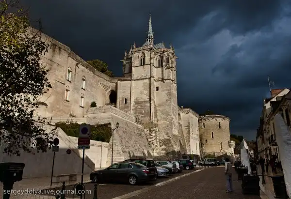 От Кло-Люсе до замка Амбуаз всего 400 метров, но прошли мы их с трудом, так как нас накрыл сильнейший ливень. Пришлось прятаться под навесиками: