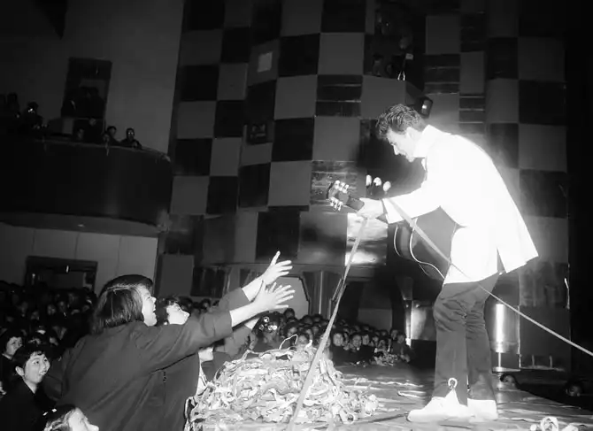 Безумствующие фанатки певца в стиле Элвиса Пресли Микки Кертиса, Токио, 18 февраля 1958. Япония увлечена рок-н-роллом.