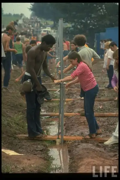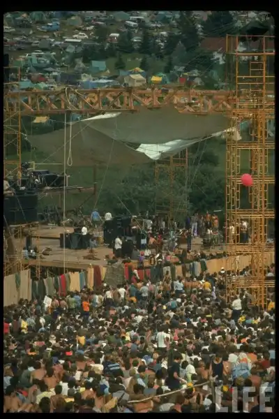 на одной из ферм недалеко от города Вудсток, штат Нью-Йорк, США. Там собралось около 500 тысяч посетителей. Перед ними выступали такие известные рок-музыканты: Джимми Хендрикс, Карлос Сантана, Дженис Джоплин и многие другие. Это событие стало, во многих отношениях, знаковым и стало визитной карточкой поколения хиппи.
