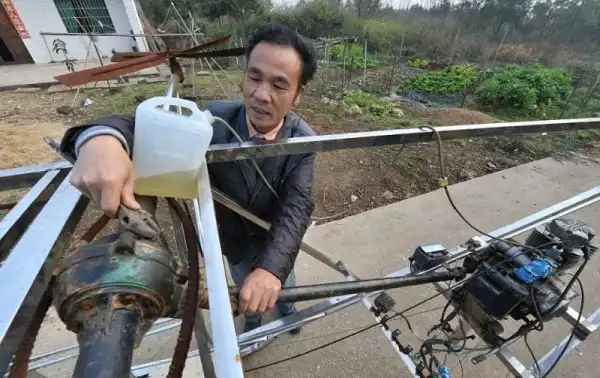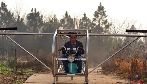 52-летний китайский фермер Ли Хушень из деревни Ганьчжоу в городском округе Милуо, провинция Хунань, собрал из металлолома действующую модель вертолета. Летательный аппарат народного умельца уже поднимается на 40 см от земли. Посмотрим, насколько далеко удастся фермеру улететь после доработок конструкции.
