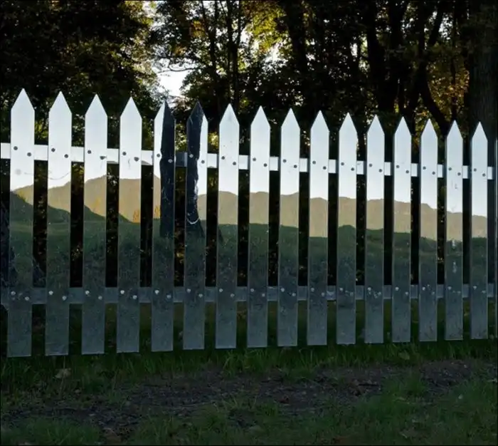 Необычный забор авторства дизайнера Элисон Шотс. Сделан он из дерева, акрила и алюминия.