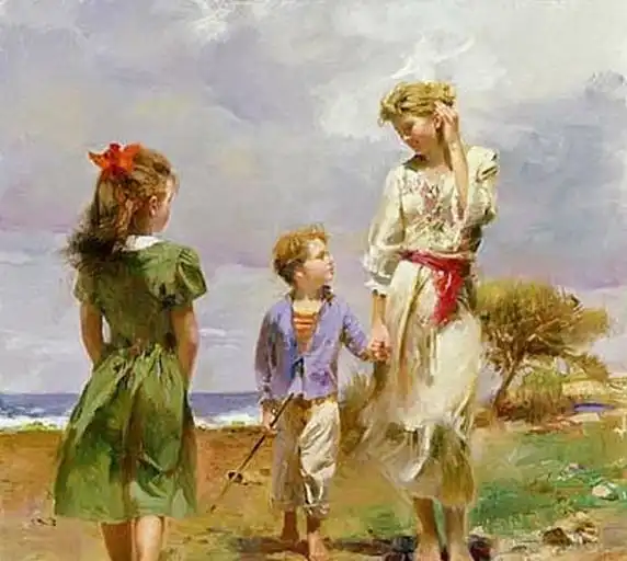 Художник PinoDaeni (GiuseppeDangelico) родом из Италии. Родился в 1939 году. С детства он был в кругу красивых женщин, сестер, тёть и кузин, к которым относился далеко не одинаково: от искреннего обожания до холодной отстранённости. В итоге, став художником, Pino изображает женщин особенно тепло и романтично, иногда в облегающих струящихся платьях и юбках, или вовсе без них.