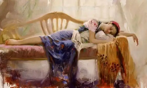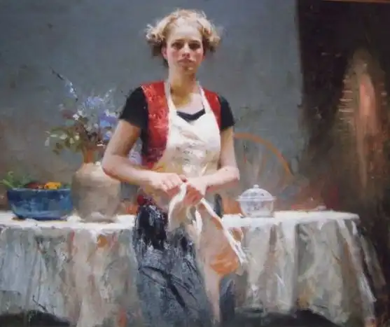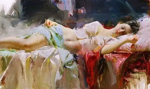 Образами живых чувственных женщин он оживляет различные помещения, от залов ресторанов до гримерок и прочих служебных помещений. На картинах бывают теплые семейные сюжеты, бывает жена ожидает своего мужа, бывает женщина ждет своего любовника, бывает… много еще сюжет у него бывает…
