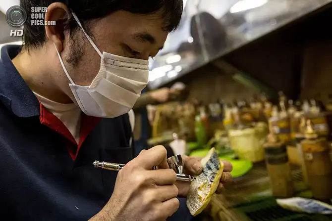 Крупнейшим производителем таких блюд является завод Iwasaki в Йокогаме. Ежегодно там производят 270 000 образцов для 20 000 ресторанов по всему миру. Мастерство местных рабочих впечатляет — даже просто глядя на фотографии ниже, невольно думаешь о холодильнике.