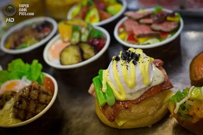 На витрине ресторанов в Японии, как и во многих других странах мира, принято выставлять завлекательные кулинарные образцы. Глядя на аппетитные пирожные, морепродукты и полноценные блюда, представленные за стеклом, очень трудно поверить, что это просто макеты, сделанные из винила.